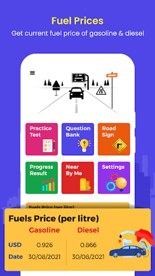 Now, No need to pay for driving theory test preparation anywhere, we made it free for all. Free DMV Driving Theory Practice Test for USA, All States app will give free practice test, question bank for preparation, road sign, progress result of the test, You can search nearby driving license office, petrol pumps and many more others, and also get fuel prices details.
