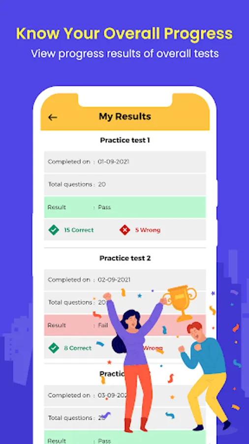 App track the progress of your practice with test analysis.