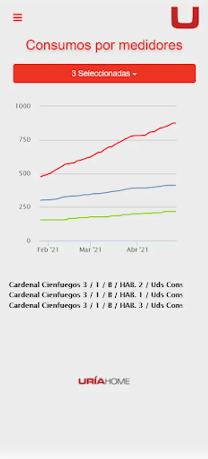 URIA HOME is a control platform for energy consumption in buildings, aimed at meeting the needs in three basic areas: control, consumption monitoring, as well as the management of monthly receipts or settlements.