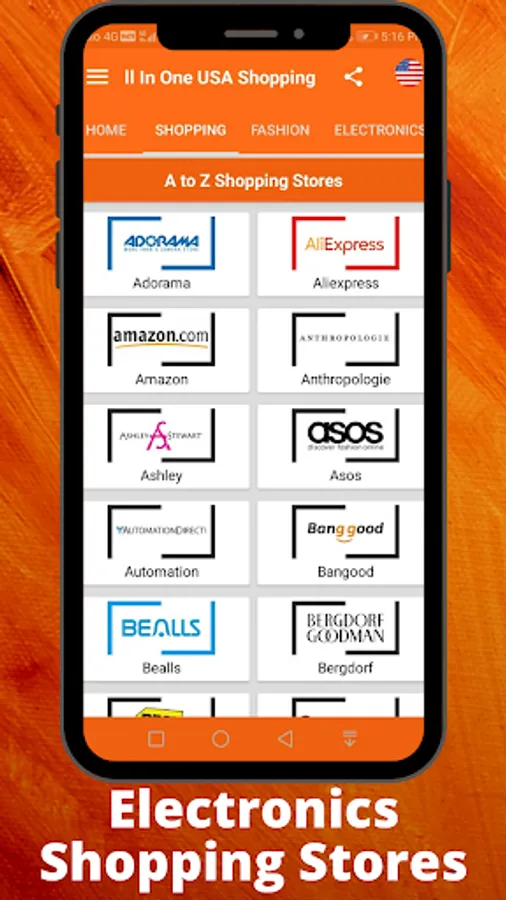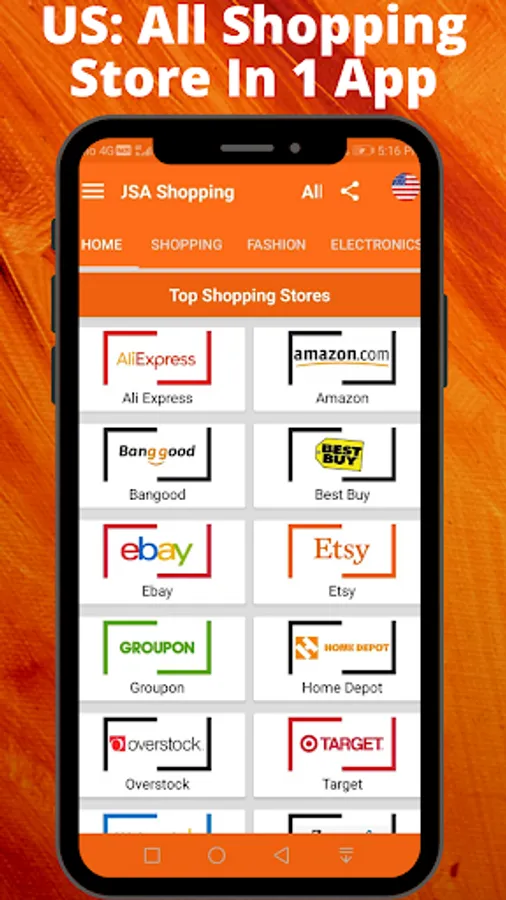 With our USA online shopping app, you can access all your favorite online shopping sites in one place like - Amazon Online Shopping | eBay Shopping | Kohl's | Walmart Online Shopping | Zappos | Newegg Shopping | Etsy Shopping | ModCloth Online Shopping | HomeDepot | Best Buy, and more.
