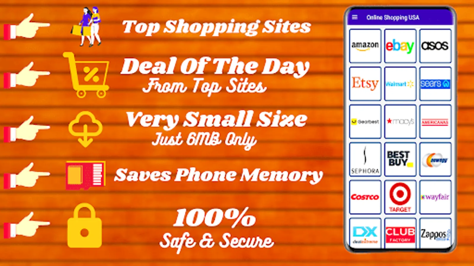 -> Easy to Use, Acces All USA Online Shopping Sites Through On App