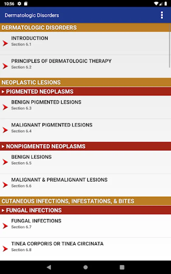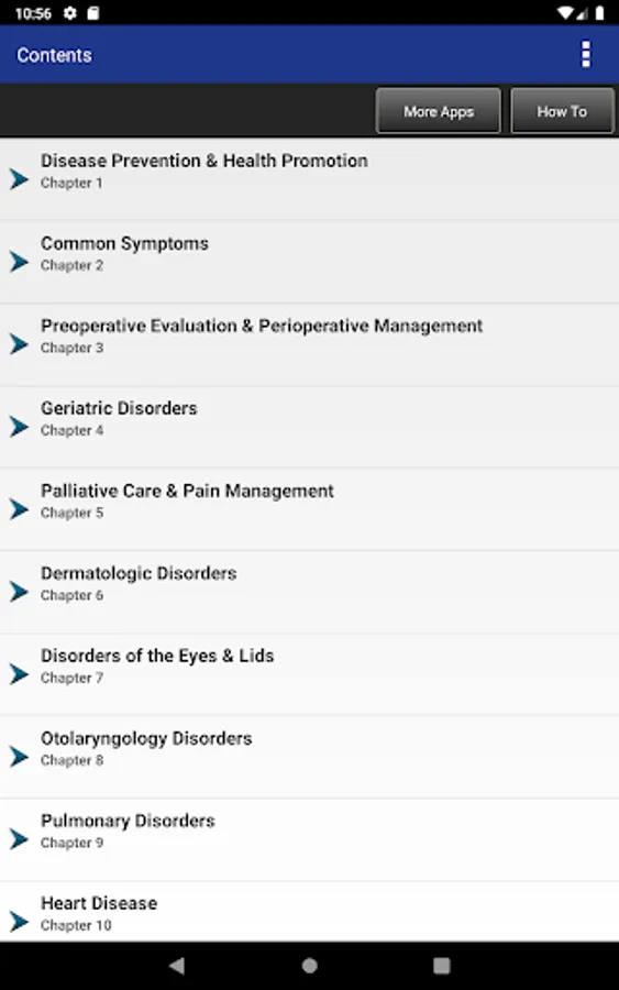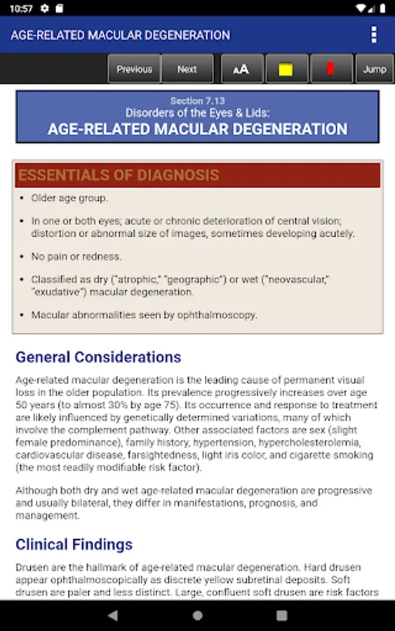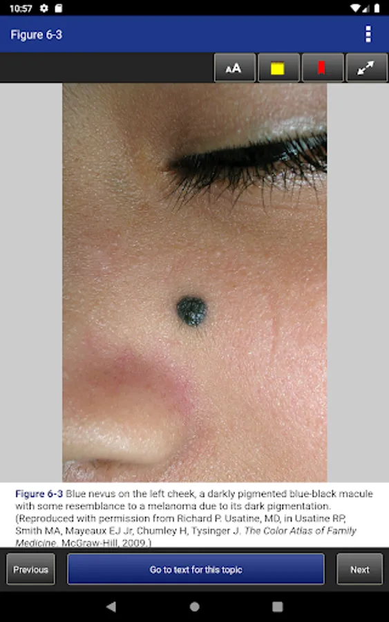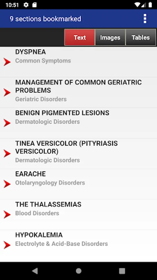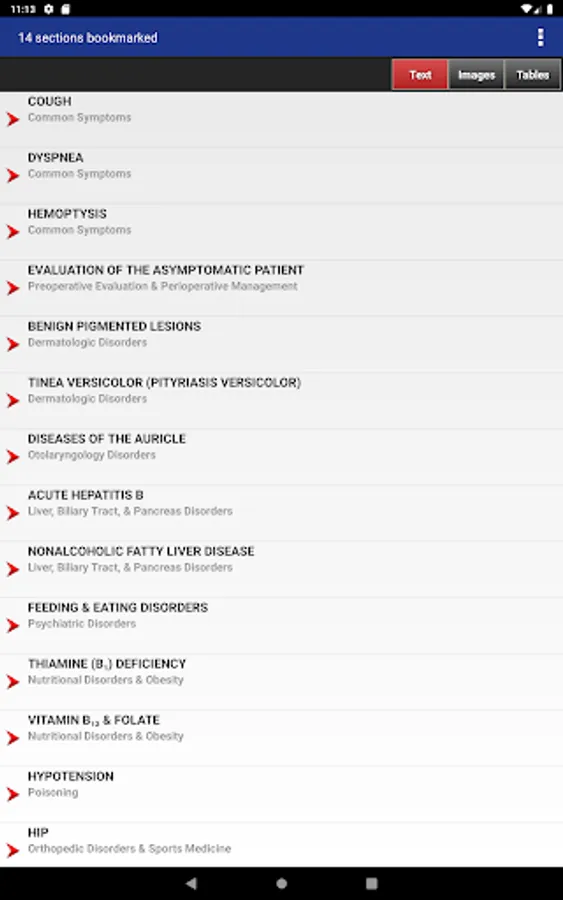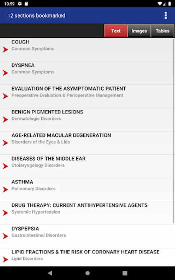 This app is very intuitive and easy to navigate, allowing you to browse the contents or search for topics. The powerful search tool gives you word suggestions that appear in the text as you type, so it is lightning fast and helps with spelling those long medical terms. The search tool also keeps a recent history of past search terms so you can go back to a previous search result very easily. You have the ability to create notes and bookmarks separately for text, images and tables to enhance your learning. You can also change the text size for easier reading.