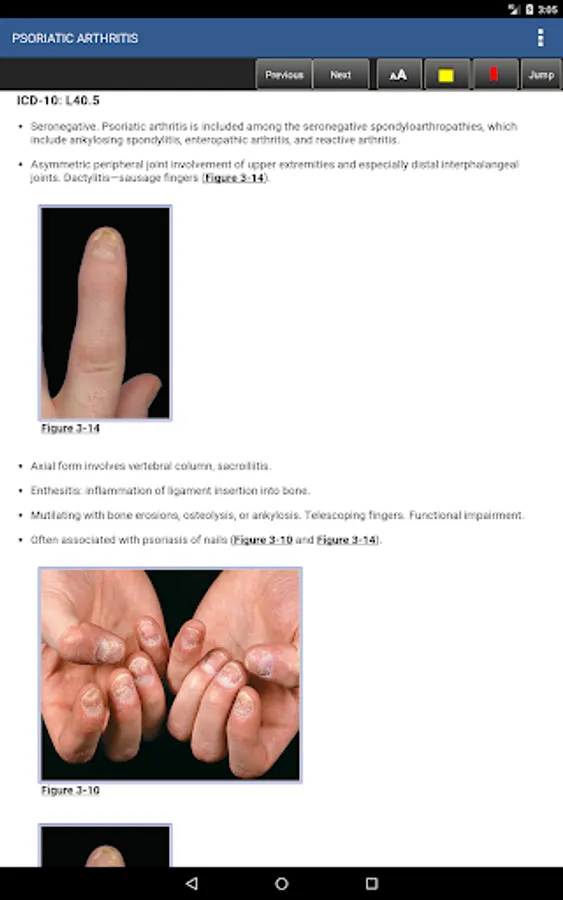 This app is easy to navigate, allowing you to browse the contents or search for topics. The search tool shows you suggestions that appear in the text as you type so it is quick and helps with spelling medical terms. It also remembers past search terms so you can go back to a topic or image very easily. You can also create notes and bookmarks separately for chapters and images to enhance your learning. You can also change the text size for easier reading.