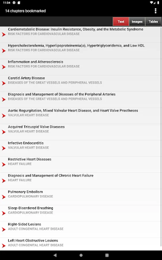 This app is very intuitive and easy to navigate, allowing you to browse the contents or search for topics. The powerful search tool gives you word suggestions that appear in the text as you type, so it is lightning fast and helps with spelling those long medical terms. The search tool also keeps a recent history of past search terms so you can go back to a previous search result very easily. You have the ability to create notes and bookmarks separately for text, images and tables to enhance your learning. You can also change the text size for easier reading.