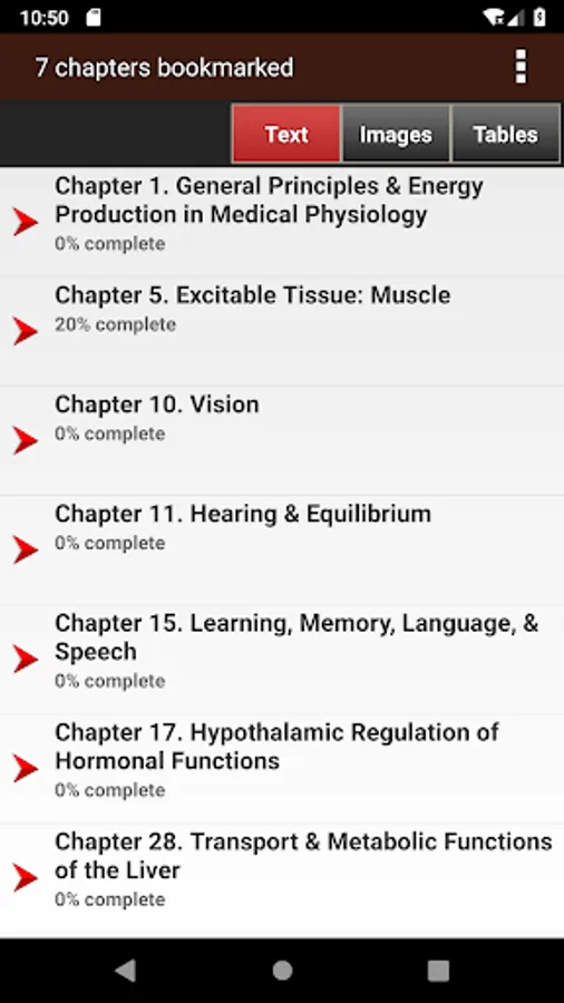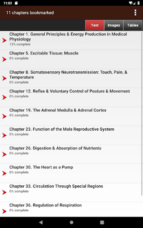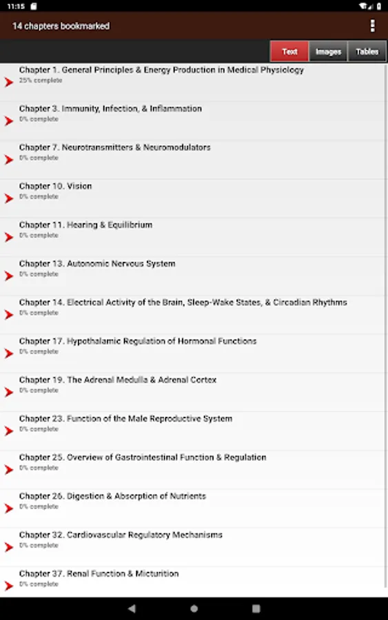 This app is very intuitive and easy to navigate, allowing you to browse the contents or search for topics. The powerful search tool gives you word suggestions that appear in the text as you type, so it is lightning fast and helps with spelling those long medical terms. The search tool also keeps a recent history of past search terms so you can go back to a previous search result very easily. You have the ability to create notes and bookmarks separately for text, images and tables to enhance your learning. You can also change the text size for easier reading.