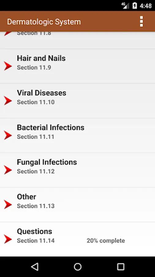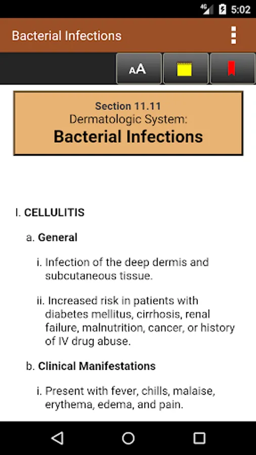 This app is easy to navigate, allowing you to browse the contents or search for topics. The search tool shows you choices of words that appear in the text as you type so it is quick and helps with spelling medical terms. It also remembers past search terms so you can go back to a topic or image very easily. You can also create notes and bookmarks separately for chapters, images and tables to enhance your learning. Your progress answering questions in each chapter is saved so that you can pick up right where you left off. Your scores for each chapter are saved so that you can view your proficiency in each area. You can also change the text size for easier reading. No internet connection needed to view the full app. It is all ready for quick image and information retrieval. This app is optimized for whatever size device you are using, either phone or tablet.