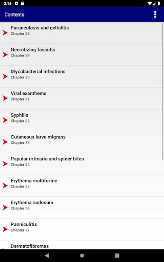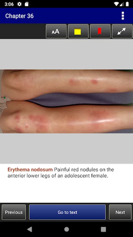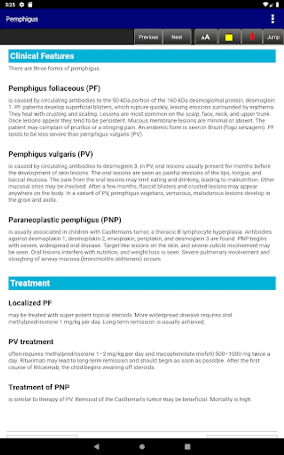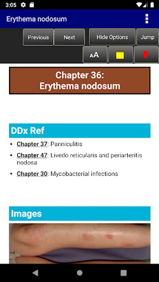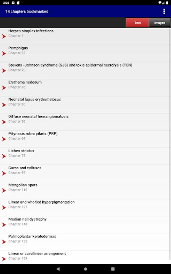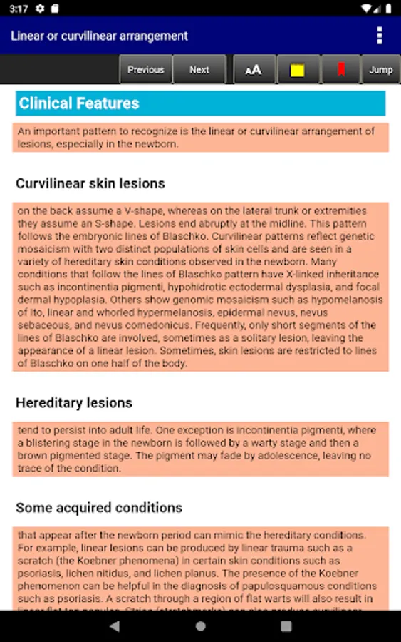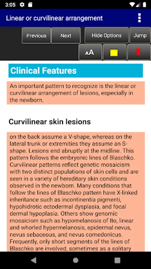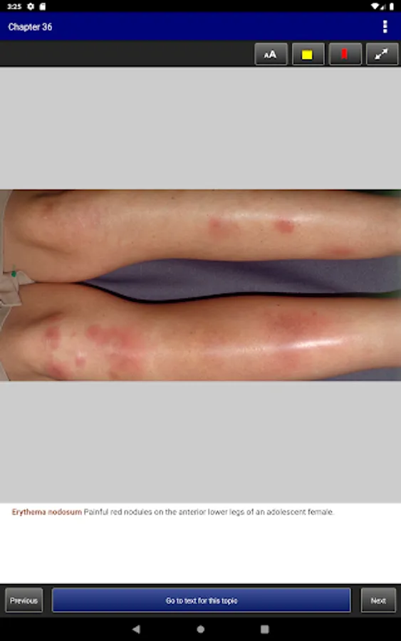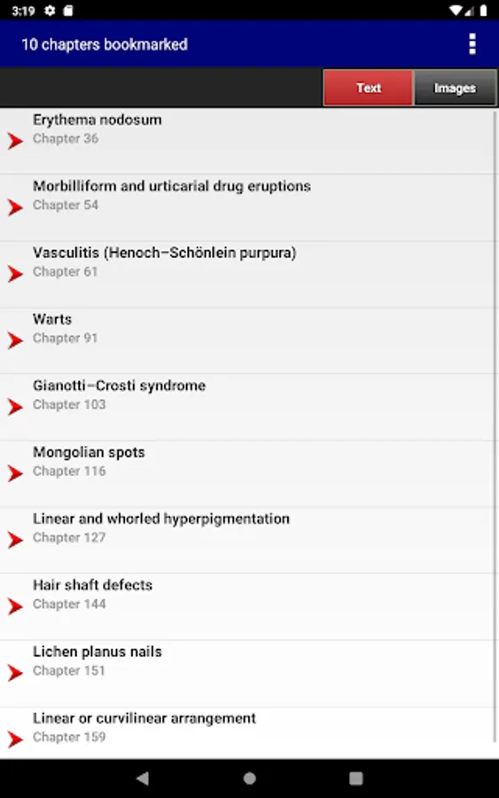 This app is very intuitive and easy to navigate, allowing you to browse the contents or search for topics. The powerful search tool gives you word suggestions that appear in the text as you type, so it is lightning fast and helps with spelling those long medical terms. The search tool also keeps a recent history of past search terms so you can go back to a previous search result very easily. You have the ability to create notes and bookmarks separately for text, images and tables to enhance your learning. You can also change the text size for easier reading.