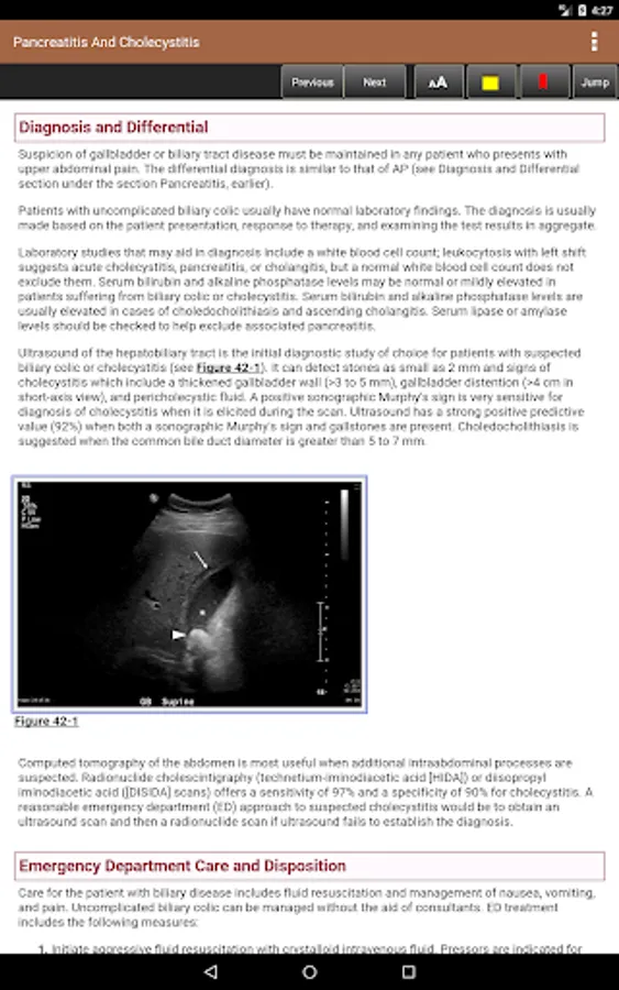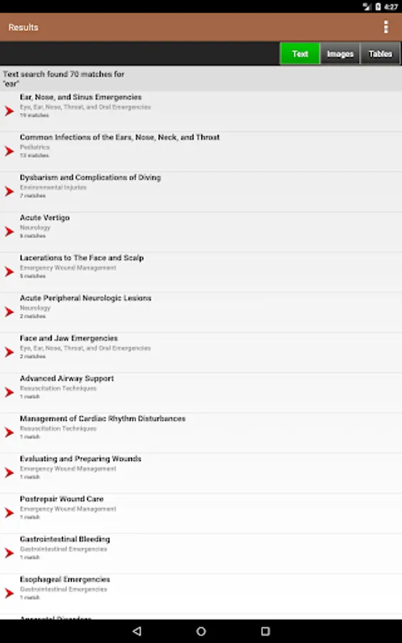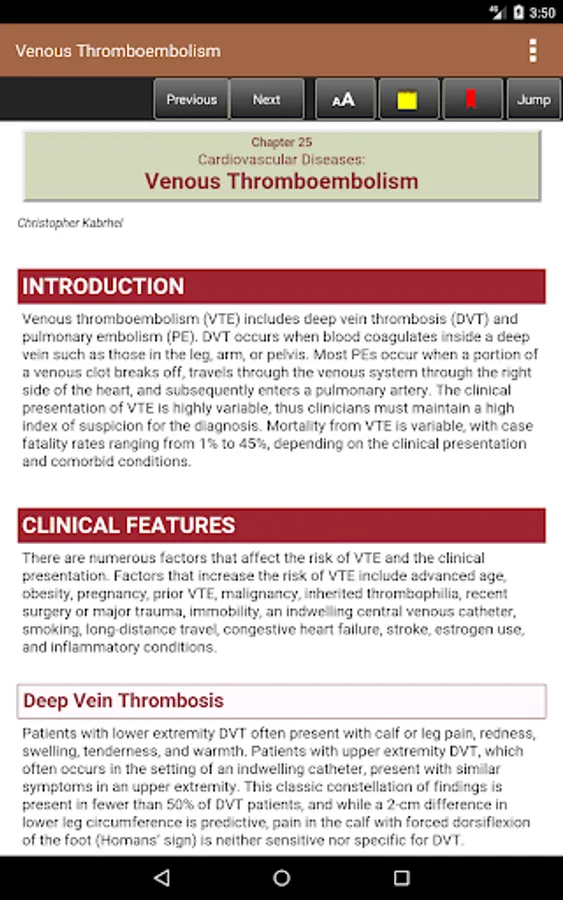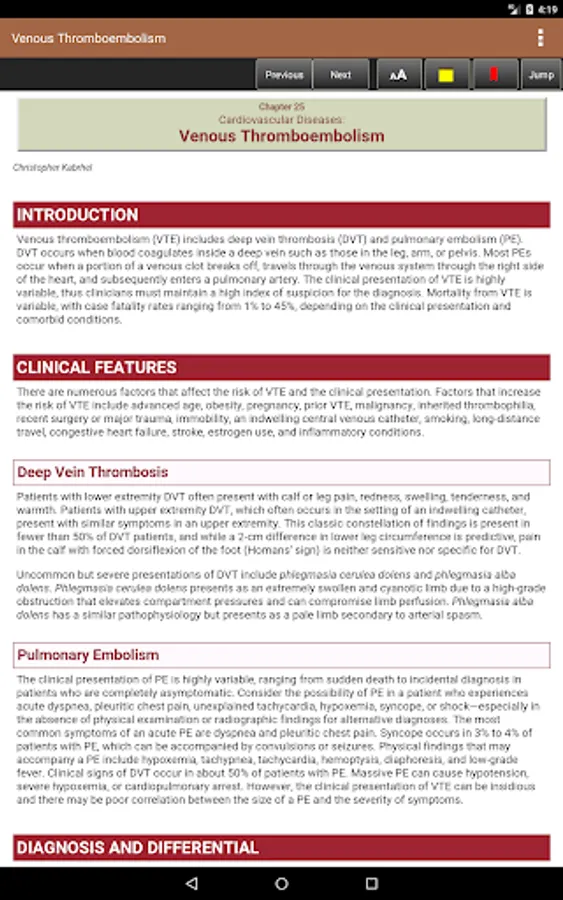 This app is easy to navigate, allowing you to browse the contents or search for topics. The search tool shows you suggestions that appear in the text as you type so it is quick and helps with spelling medical terms. It also remembers past search terms so you can go back to a topic or image very easily. You can also create notes and bookmarks separately for chapters and images to enhance your learning. You can also change the text size for easier reading.