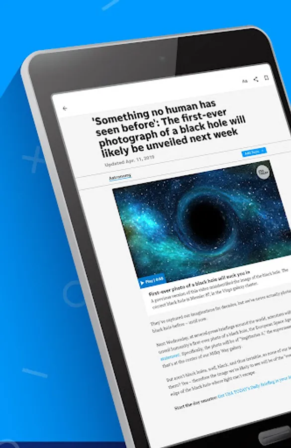 Get to the heart of the matter — fast with the USA TODAY app. Whether it's US news, national news, breaking news, world news, politics, sports, entertainment, or business, get succinct, personalized coverage along with award-winning videos, captivating photography, and interactive user features. The point is — get major coverage all in a compact device that fits right in the palm of your hand.