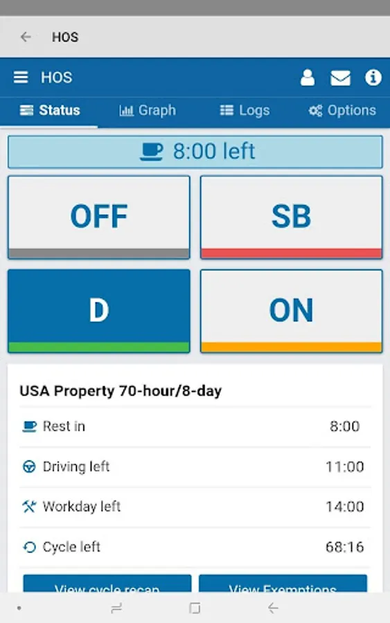 • Sync to Geotab for HOS duty status, perform DVIR, view eLogs