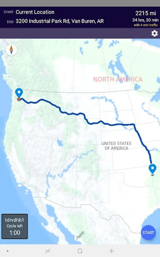 • Navigate turn-by-turn using HERE Truck Routing Navigation with live traffic rerouting and floating HOS clock