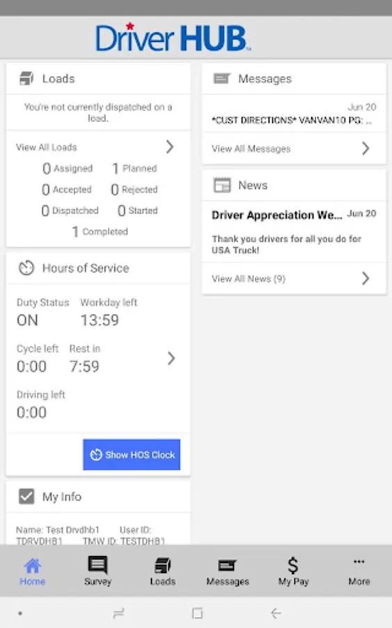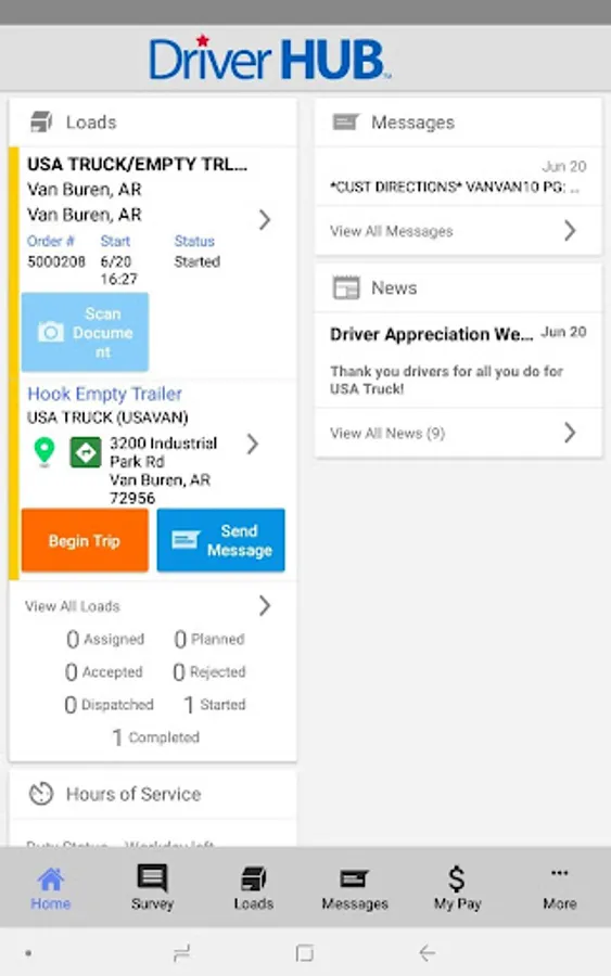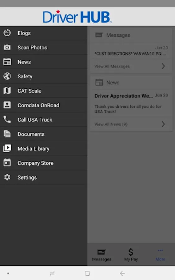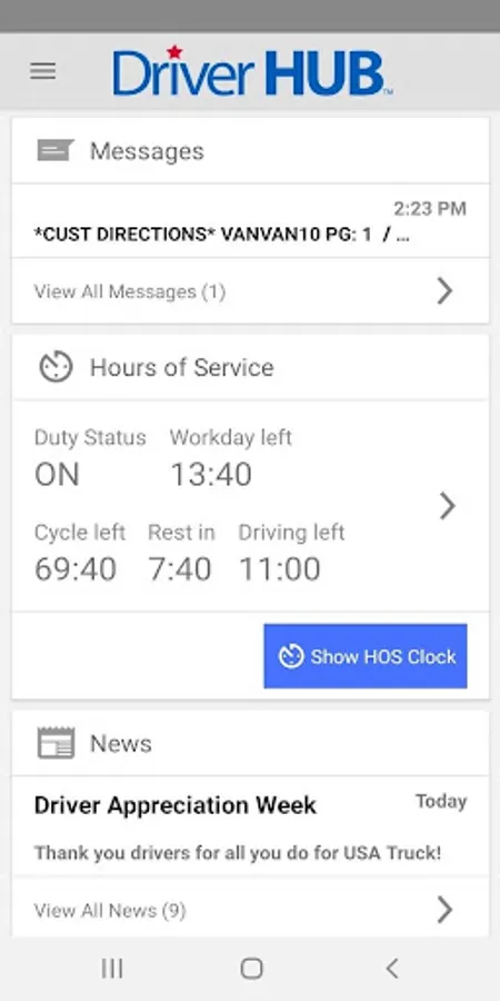 The USA Truck Driver Information Hub (Driver HUB) was designed with you, our valued professional driving team members, in mind. This is your portal to an easier and more efficient life on the road. You can do many things with this app, including: