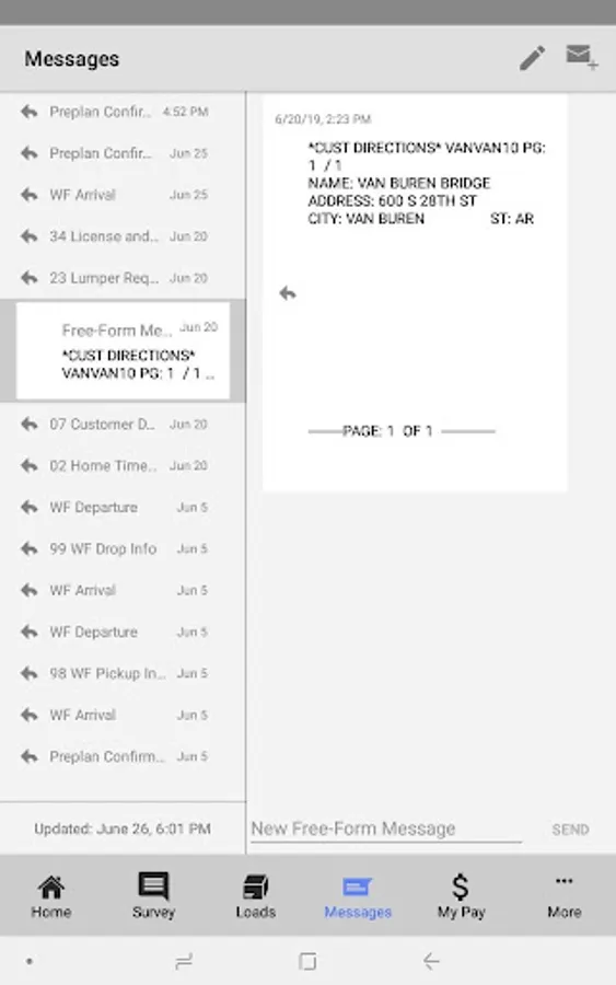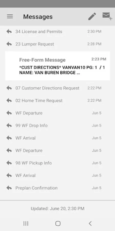 • Perform all Circle-of-Service steps for loads and stops using Dispatch Workflow buttons and forms