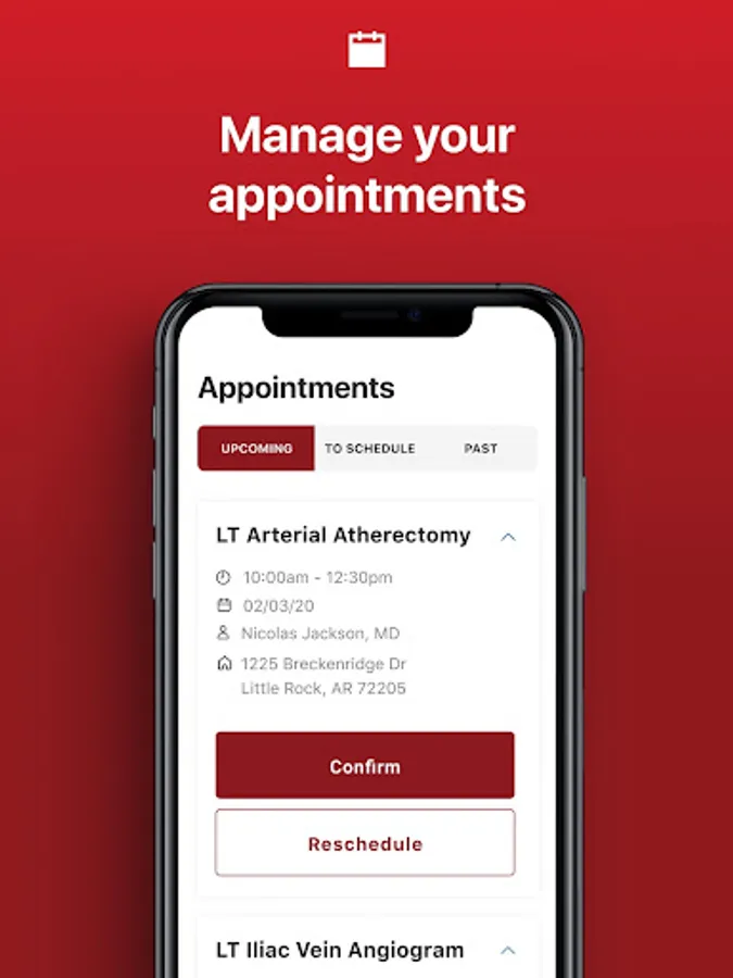 The app allows you to track and manage your entire treatment process - from your initial visit to your recovery. Directly from your mobile device, you can review your care plan, manage your existing appointments, schedule new appointments, and access and pay your bills. Additionally, the app grants you access to reliable research-backed information about your condition and sends you convenient reminders about upcoming appointments to keep you organized and healthy.
