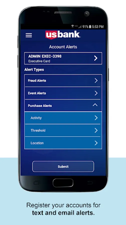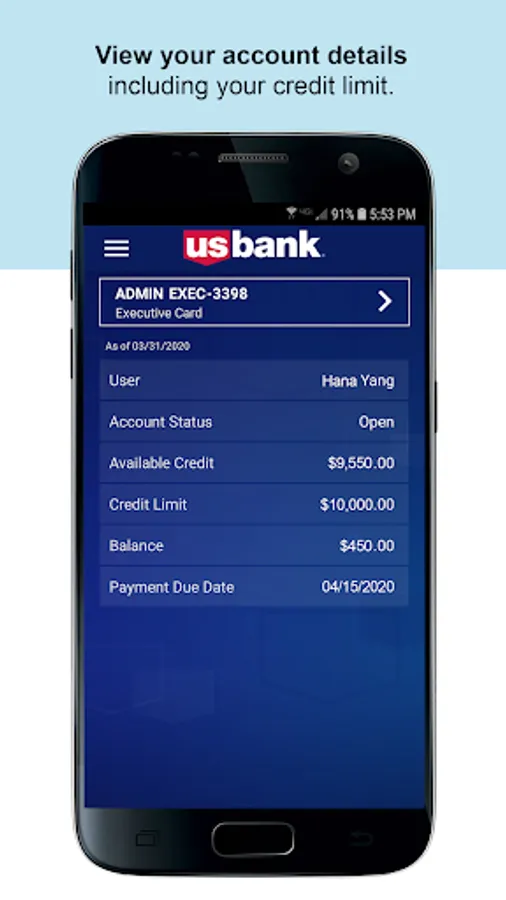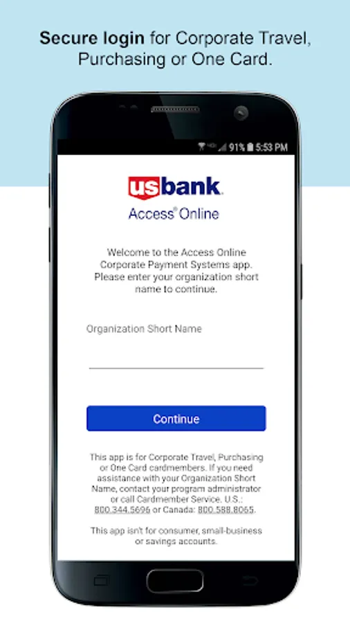 U.S. Bank Access® Online Mobile is a secure, easy-to-use app that provides anytime access to your U.S. Bank Commercial Card accounts. Simply sign in with your U.S. Bank Access® Online organization name, user ID, and password to see your card status, activity, and much more.