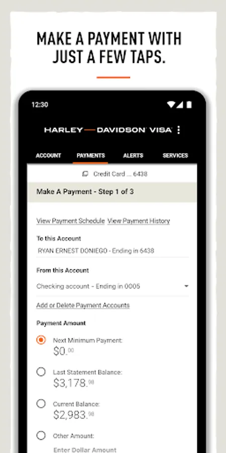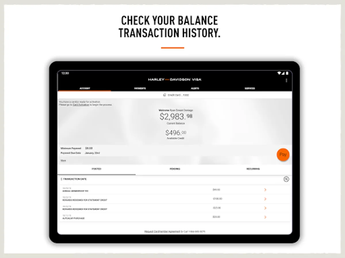 The Harley-Davidson® Visa card is pleased to offer you a mobile solution to easily access your credit card account on the go.