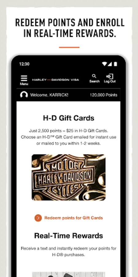 Receive a text with the option to redeem your points instantly if your points balance can cover the H-D purchase.