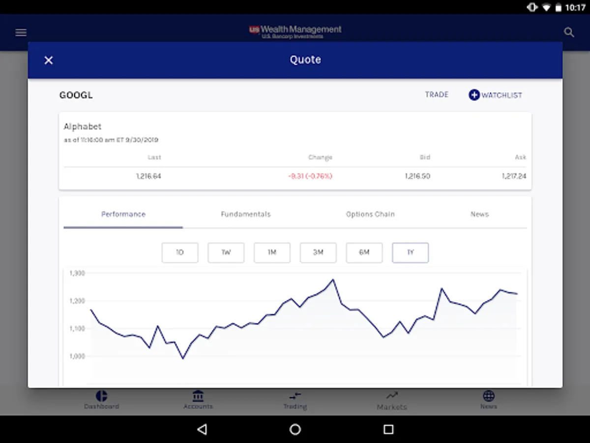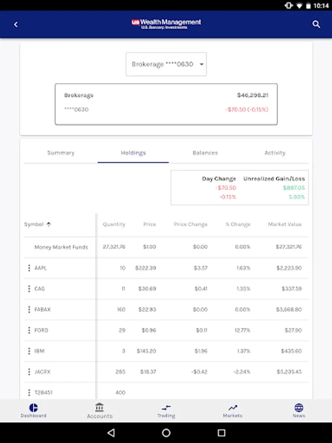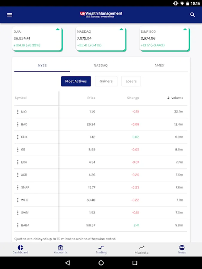 Access your investments anytime, from anywhere with the U.S. Bancorp Investments Mobile App. With the mobile app you can access your accounts, place trades, and get quotes and market news.
