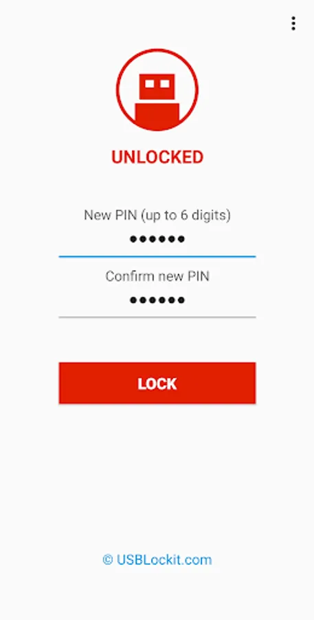 1. To lock the USB drive and protects all your files, simply set a PIN and click on LOCK button.