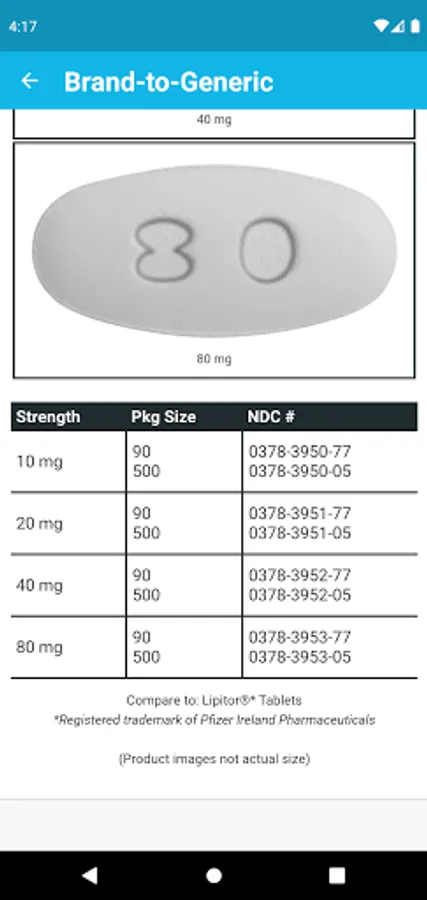 • If a Legacy Mylan product is available, the color photograph(s), strength(s), package size(s) and NDC number(s) will be displayed below the search result.