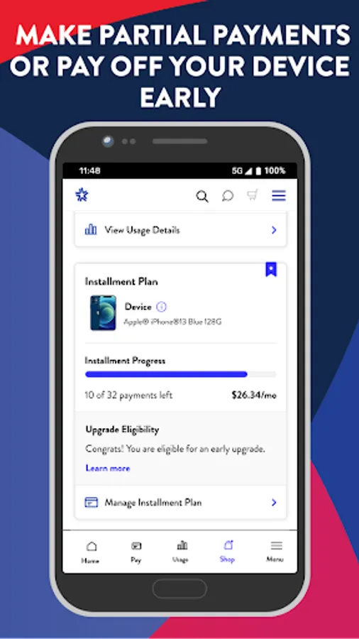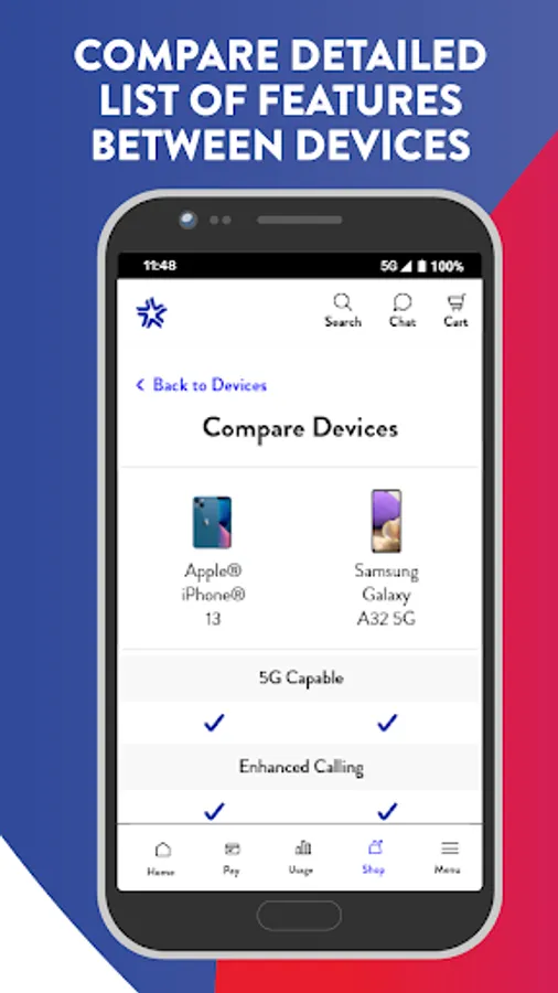 Your UScellular® account at your fingertips – anytime, anywhere. Plus, a sleek redesigned shopping experience and enhancements to get you to your next upgrade faster.