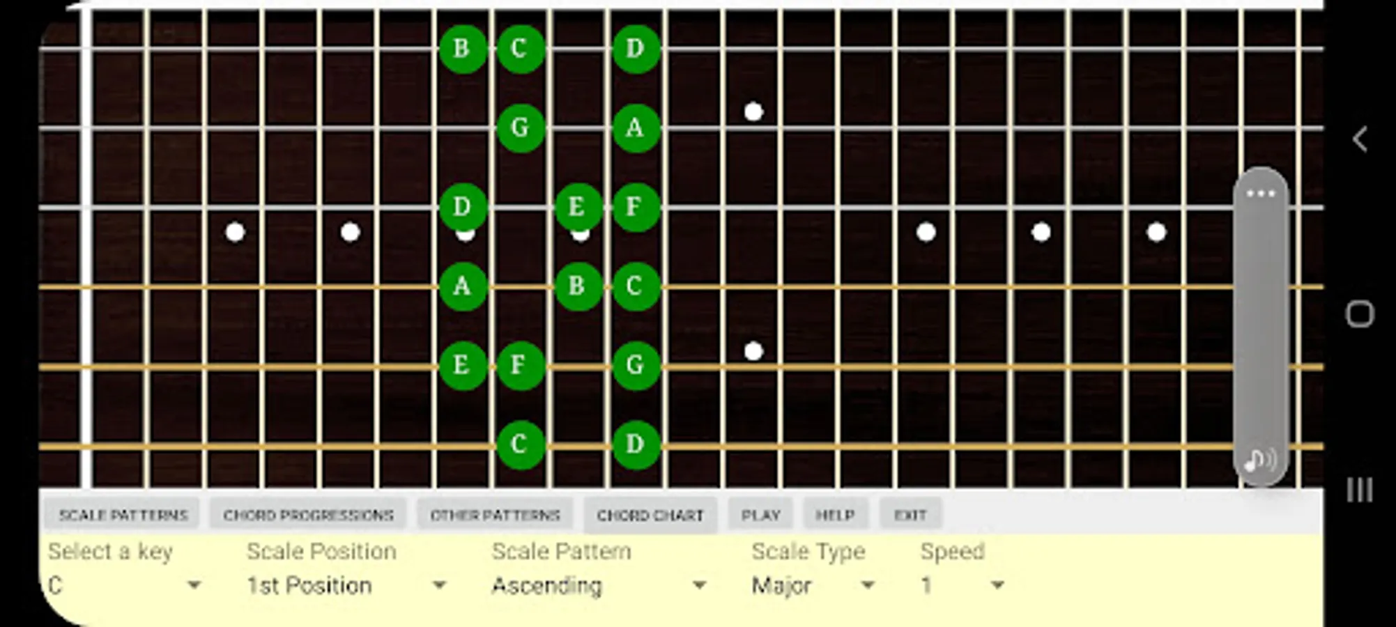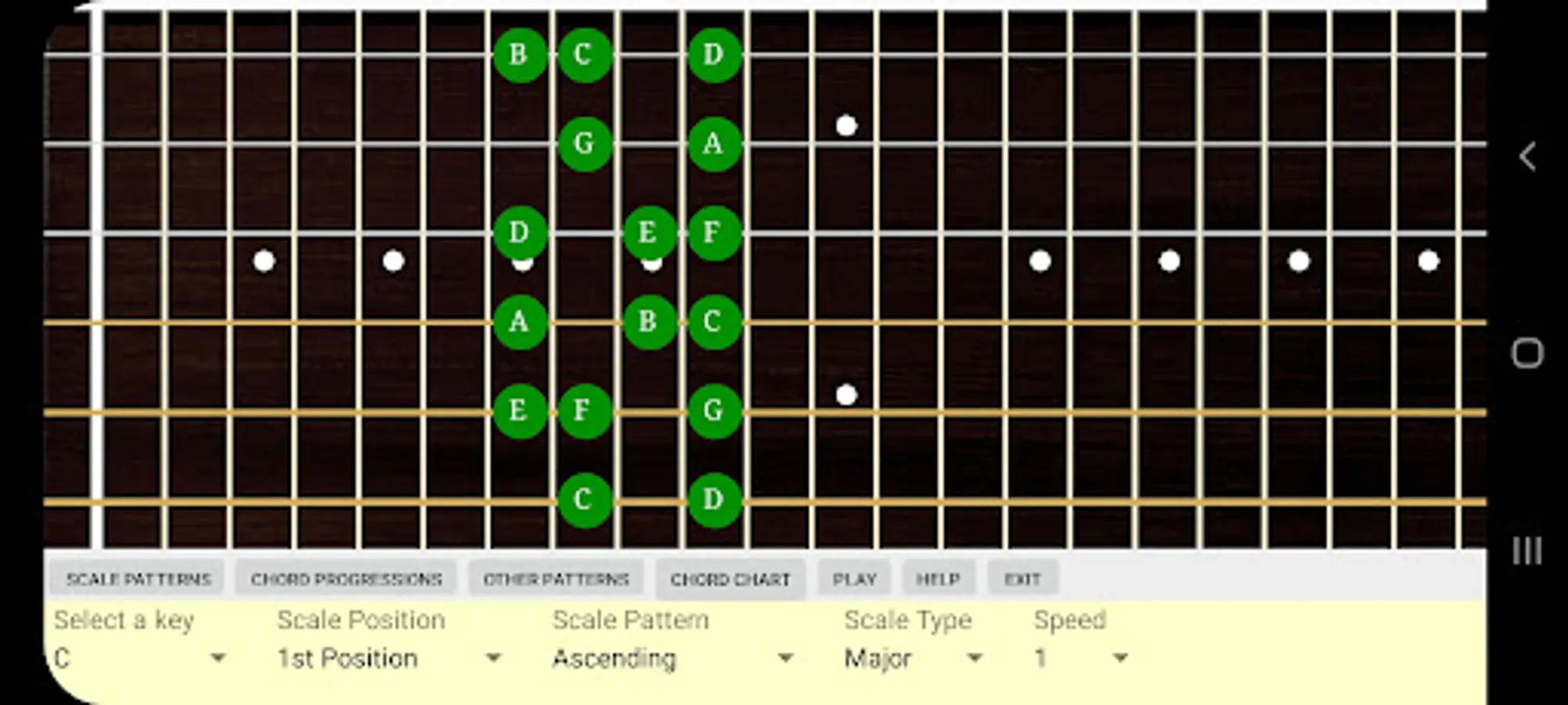 in a deeper way. For instance each major / minor key for the guitar has exactly five positions. The fingerings for each position are identical and with this training software you are able to see the five patterns displayed in any key. Learning those patterns and seeing the