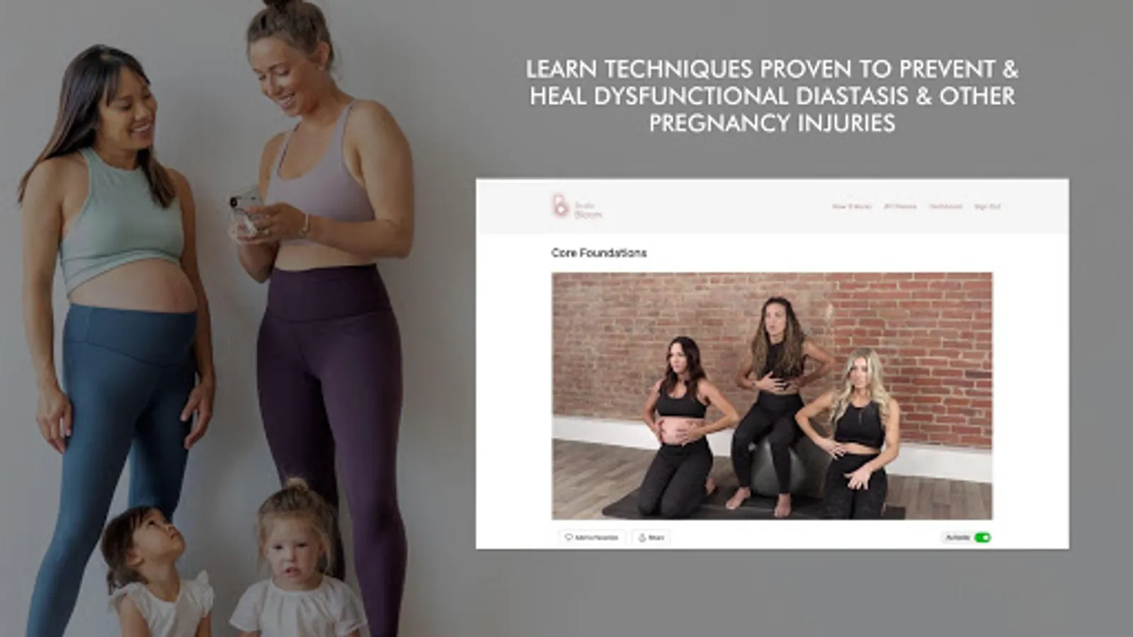 Bloom’s techniques are proven to help you get stronger through pregnancy, recover faster after birth, and heal past pregnancy injuries like Diastasis Recti. Join thousands of happy Bloom mamas and discover the power of our method. Inside Studio Bloom you’ll find:
