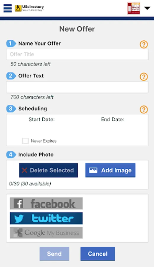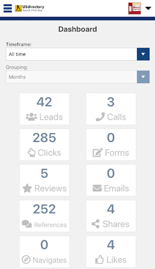 View your account’s performance and get detailed metrics about how customers are reacting to your active promotions on USdirectory, including calls, navigates, social media shares, and much more. USdirectory’s Merchant app really allows you to close to the loop on your company’s local digital marketing efforts and keep track of its pulse.