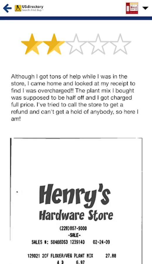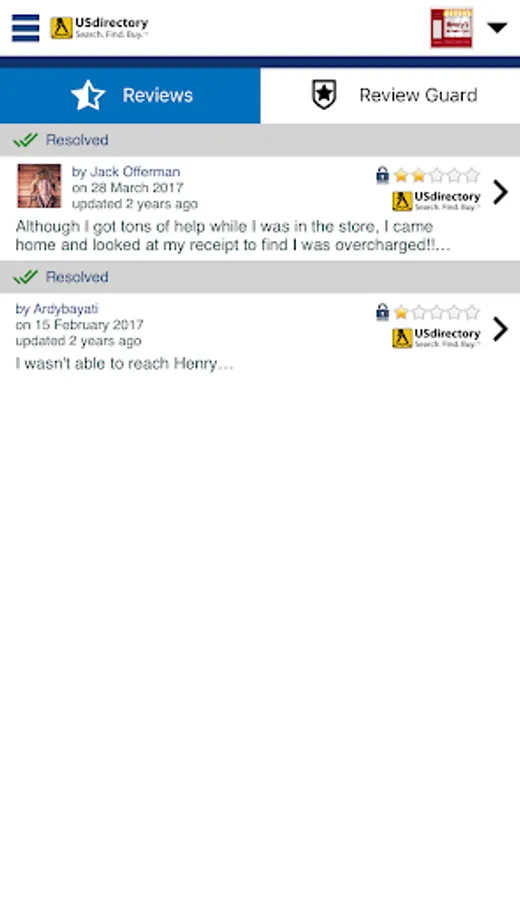 Participating USdirectory Merchants can use this app to check reviews about their business from over 2000 digital review sources. Get notified instantly when someone posts a sub-par review on USdirectory and then use USdirectory's instant customer chat screen to resolve your unhappy customer's concern thereby increasing your chance of getting only positive reviews.