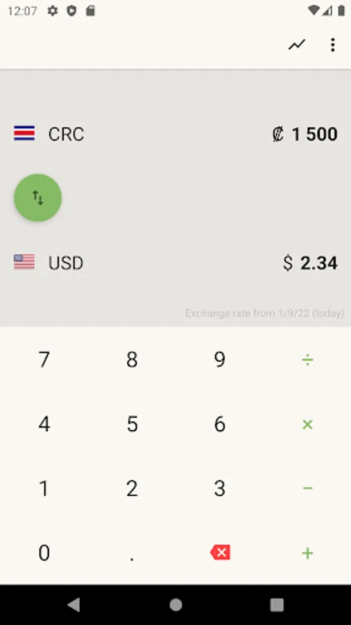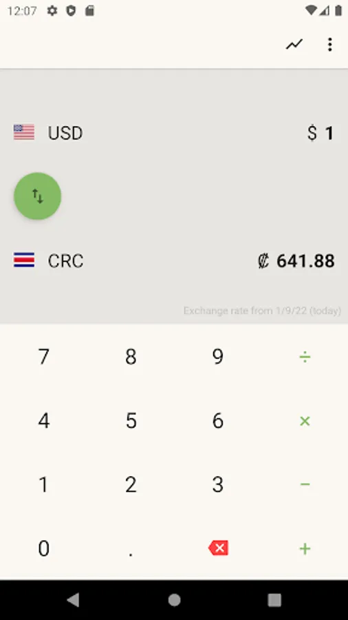 US Dollar to Costa Rican Colón is the best currency converter app which converts Costa Rican Colón (CRC) to US Dollar in real time with latest exchange rates available for Costa Rican Colón and US Dollar in international market and local markets as well. If you want to have a currency app on the go which lets you convert Costa Rican Colón to US Dollar or US Dollar to Costa Rican Colón then you must download US Dollar to Costa Rican Colón Currency Converter app as it is very simple to use and very user friendly. There is no complex methods to use currency converter app, it has built in calculator as well which lets you plus, minus, multiple and divide your Costa Rican Colón or US Dollar amount while converting them.