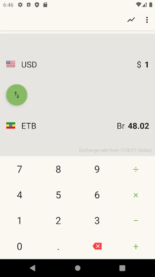 US Dollar to Ethiopian Birr is the best currency converter app which converts Ethiopian Birr to US Dollar in real time with latest exchange rates available for Birr and US Dollar in international market and local markets as well. If you want to have a currency app on the go which lets you convert Birr to US Dollar or US Dollar to Ethiopia Birr then you must download US Dollar to Ethiopian Birr Currency Converter app as it is very simple to use and very user friendly. There is no complex methods to use currency converter app, it has built in calculator as well which lets you plus, minus, multiple and divide your Birr or US Dollar amount while converting them.