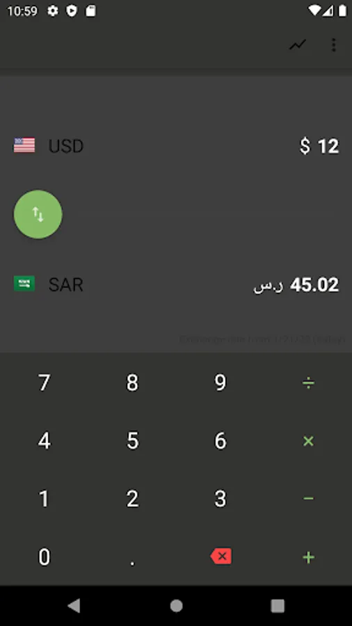 US Dollar to Saudi Riyal is the best currency converter app which converts Saudi Riyal to US Dollar in real time with latest exchange rates available for Riyal and US Dollar in international market and local markets as well. If you want to have a currency app on the go which lets you convert Riyal to US Dollar or US Dollar to Saudi Arabian Riyal then you must download US Dollar to Saudi Riyal Currency Converter app as it is very simple to use and very user friendly. There is no complex methods to use currency converter app, it has built in calculator as well which lets you plus, minus, multiple and divide your Riyal or US Dollar amount while converting them.