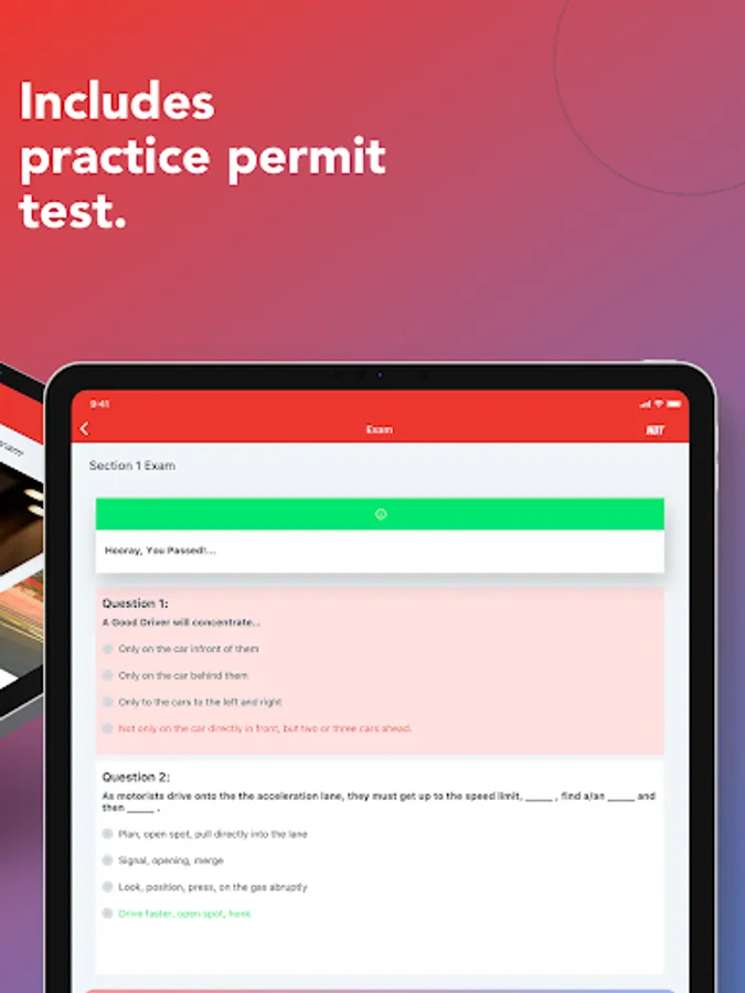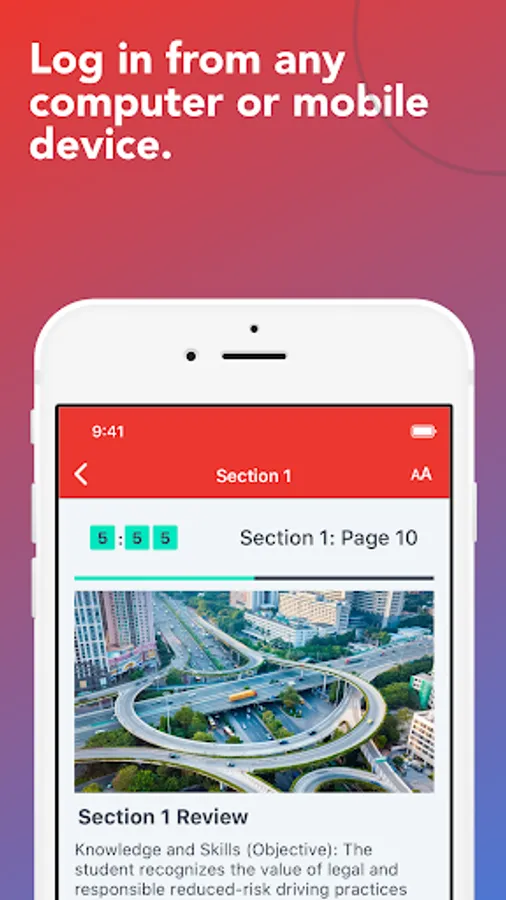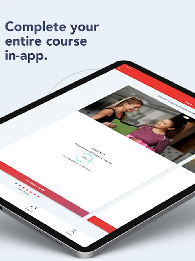 -> Your progress syncs automatically across all of your devices. You can start your drivers ed course on your smartphone, and finish it on your parent's smartphone, we don't judge.