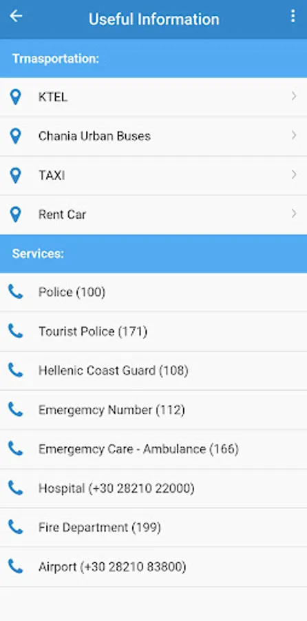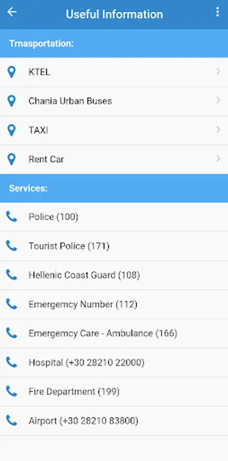 The app also includes practical information for tourists, such as transportation options and useful contacts.