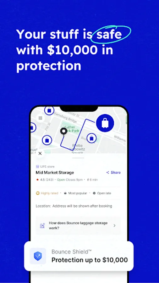 Featured in Forbes, TechCrunch, CBS, and NBC, Bounce has 1000+ storage locations in more than 250 cities worldwide and offers fully protected storage.