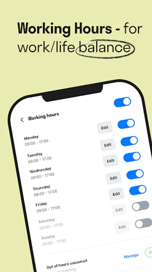 With Chalkboard, you can set different working hours for each of your numbers, so if one team starts work as another’s clocking off, we’ve got you covered to help maintain that all important work/life balance.
