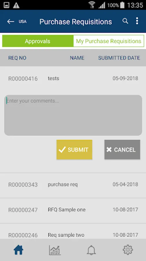 USERapidApp from USEcology gives you option to access and view the real time data from Dynamics 365. Users will be able to review and take appropriate workflow actions(Approve,Reject,Request Change,Delegate,Submit,Recall) for both Purchase Order and Purchase Requisition.