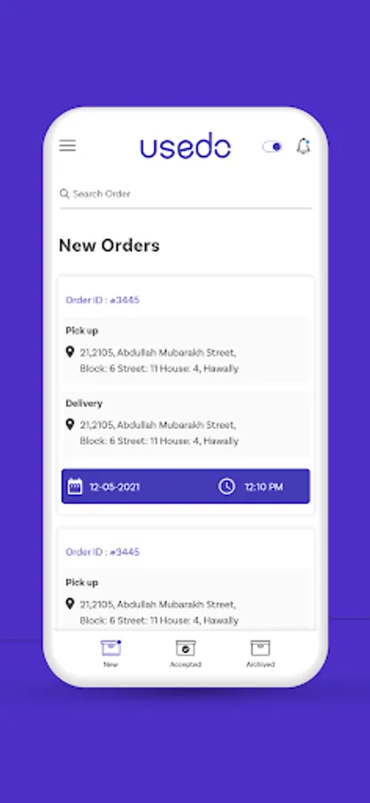 App for Usedo's couriers to view delivery assignments and update its statuses.