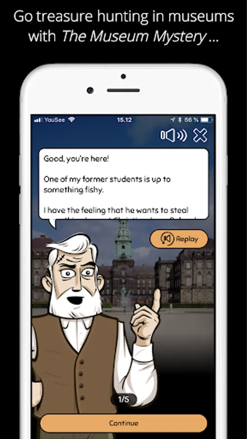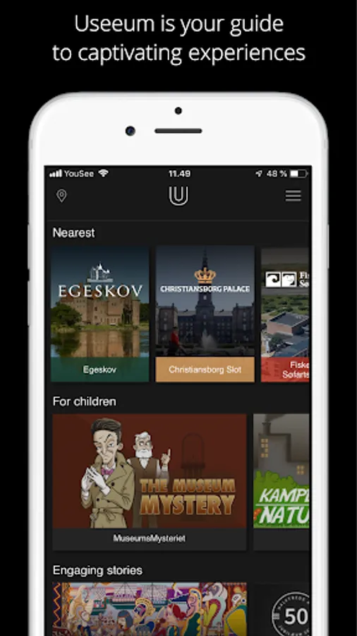 These are of some the games you can find in the Useeum app: Nature Quest, The Mystery at Hammershus, The Museum Mystery, Mytedetektiverne, Mysteriet om Dannebrog, Mysteriet på Hammershus, The Ricetto Mystery, Parforcejagt og OppermannMysteriet.
