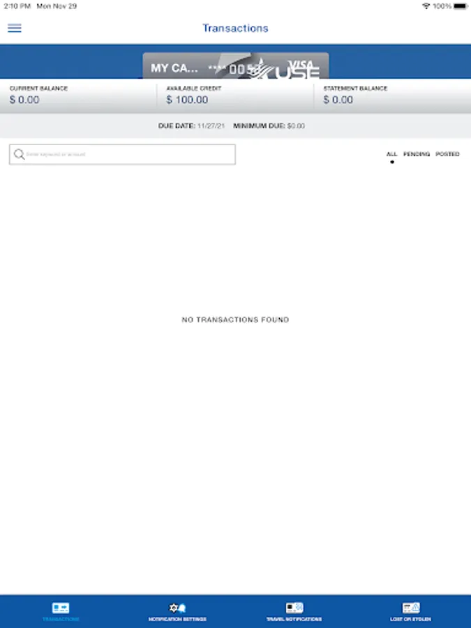 • View recent and pending transactions.