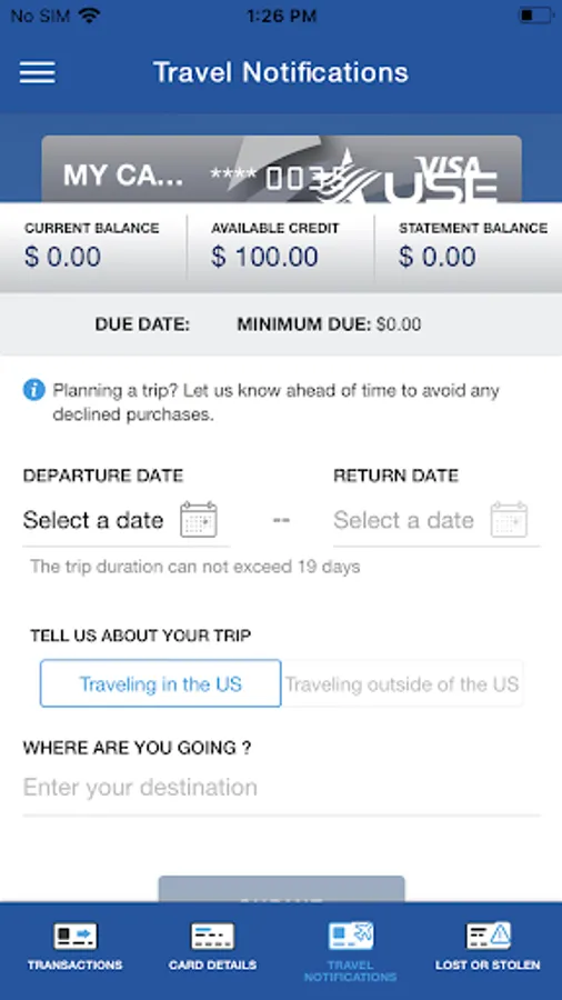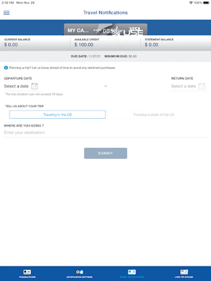 • Set travel notifications.