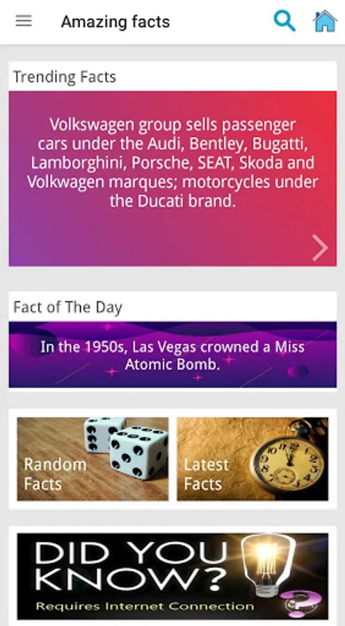 The app Contains 50000+ Amazing and Awesome Facts that you have not heard before.