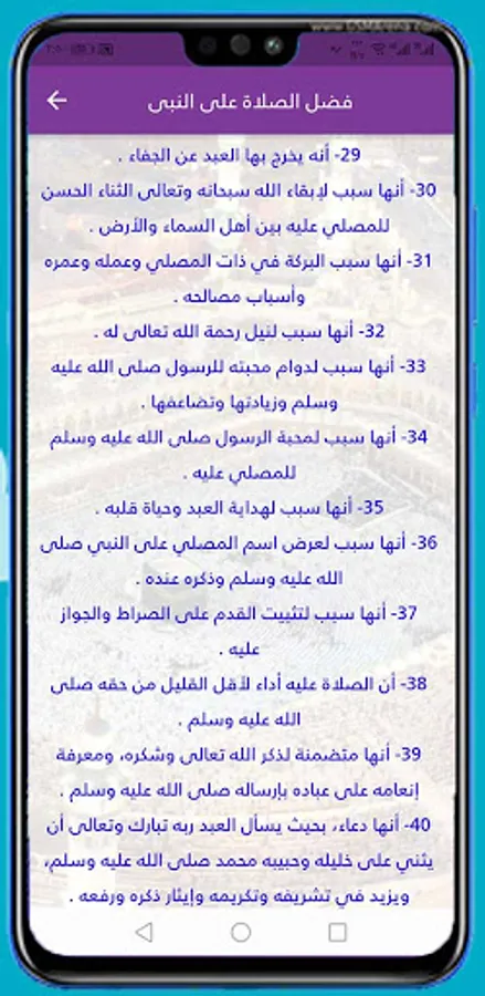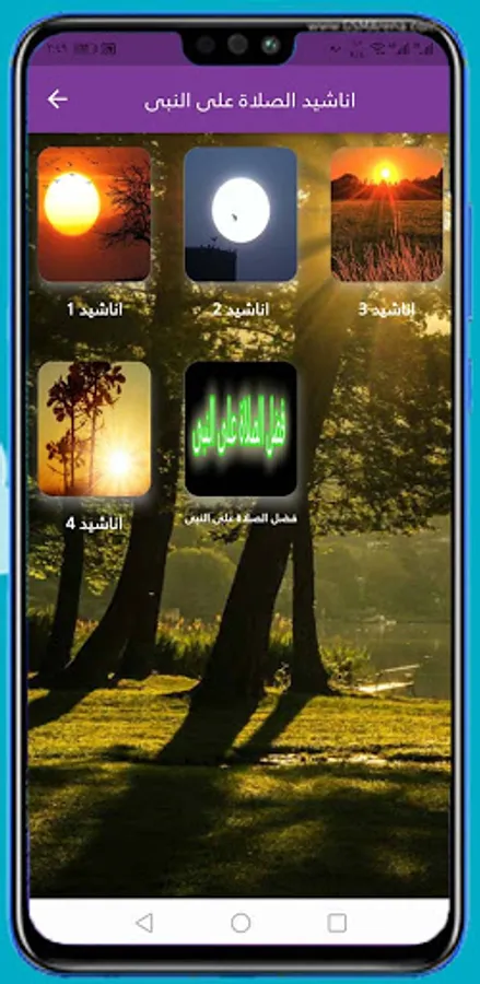 ⬅️ The application of Islamic songs without music and prayers for the Prophet is also characterized by its wonderful backgrounds, ease of installation, browsing and moving between the contents of the application of songs praising the Prophet and songs about the Prophet