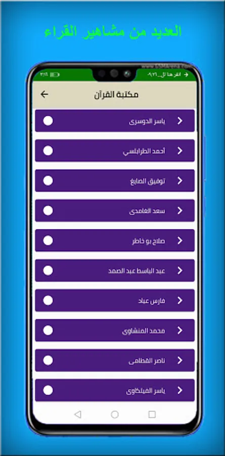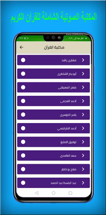 Through this wonderful application, you can listen to the Noble Qur’an audio for many reciters of the Noble Qur’an with ease.