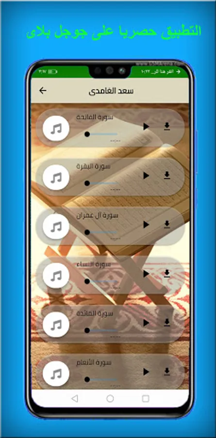 This application serves as a comprehensive audio library that includes the entire Holy Qur’an with the voice of many reciters of the Noble Qur’an and contains many famous sheikhs of the Noble Qur’an with the ability to download the Holy Qur’an mp3 surahs and listen to it directly at any time and listen to the recitation of the Noble Qur’an by accredited sheikhs of the Noble Qur’an