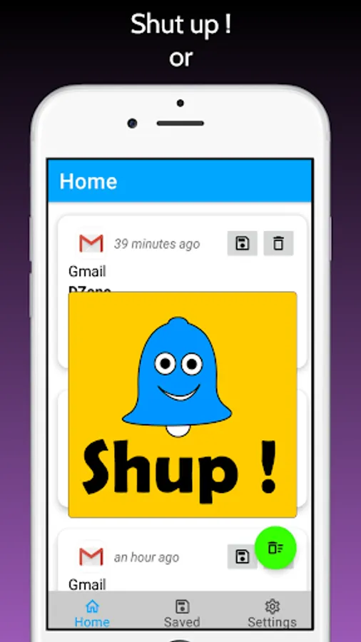 These captured notifications are saved and will be shown to you in the Shup! apps home page.
