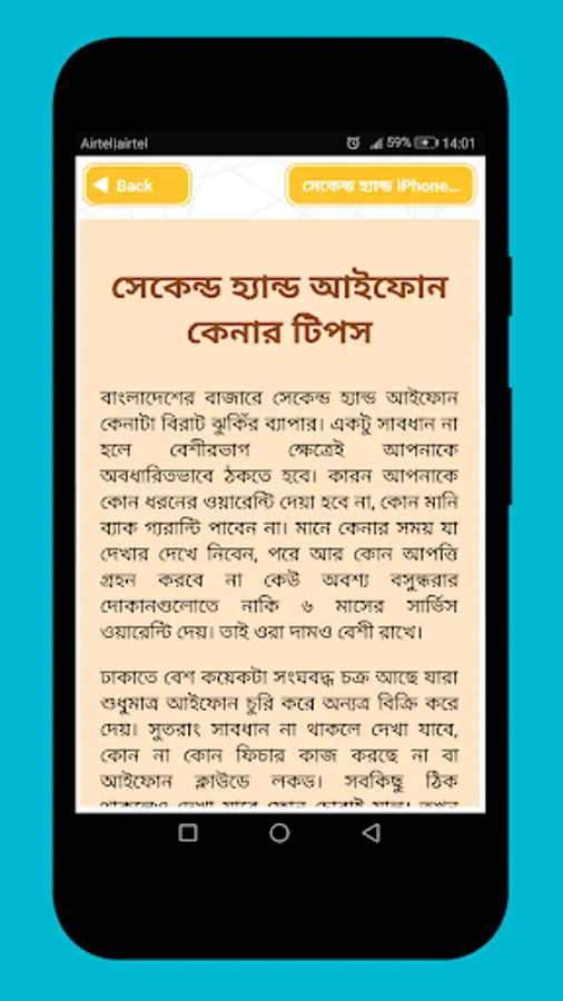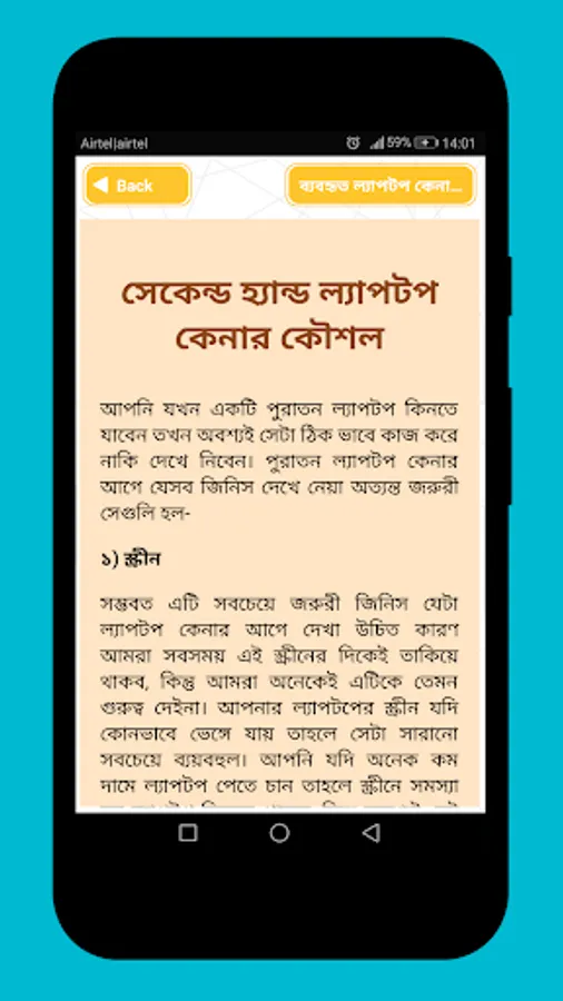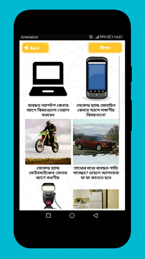 Tips to buy second hand things is trips and tricks related bangla educational app. Many of us look for used things or old things to buy as they demand low price. By being cost effective we often get worse things. And that's why we made this bangla educational app to give you the proper tips about buying second hand things such as: