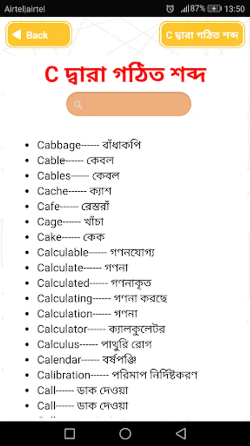 We have added the search option. So from now on you can easily search and find your desired words very effectively.