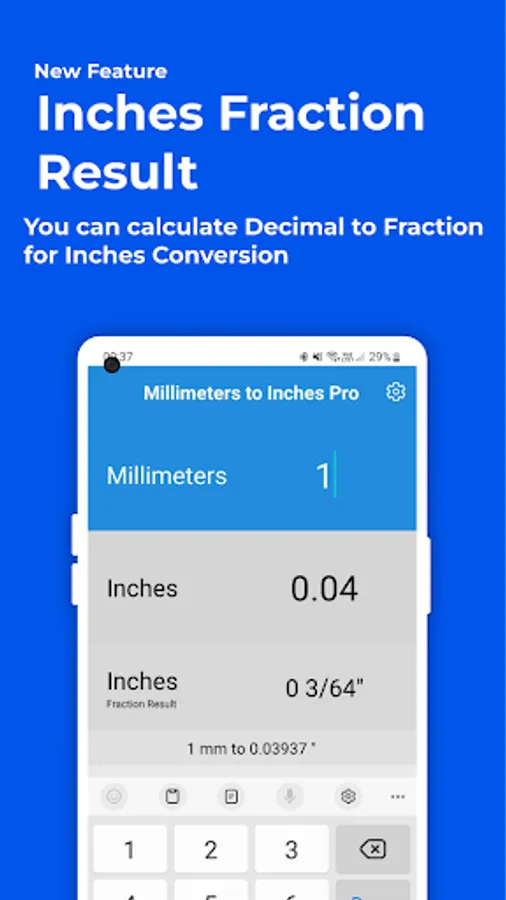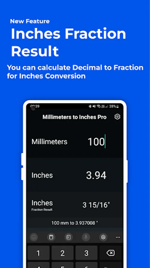 Millimeters to Inches converter pro (mm to inch converter) is a super fast and very simple one by one length unit converter and calculator app.