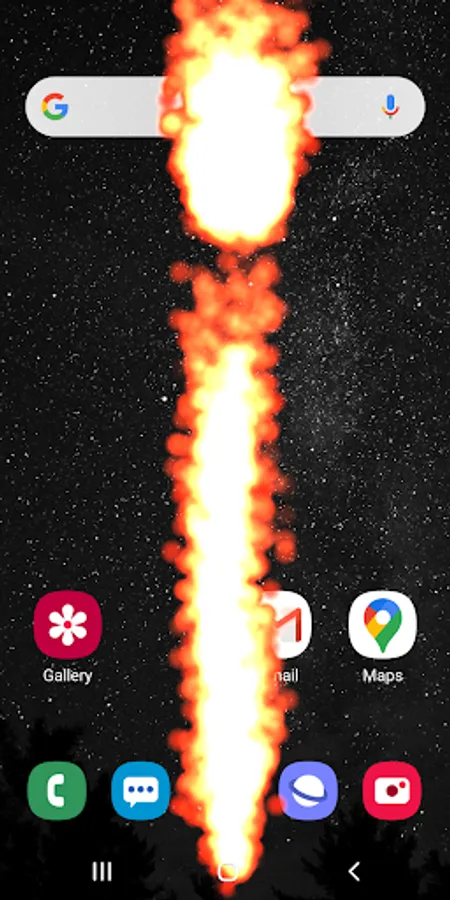 This cool app displays very realistic flame animation on the screen of your phone. Fire effect shows up in the place where you touch the screen with your finger. This tool uses advanced graphic particle system, thanks to which behaviour, movement and appearance of the fire look very natural. Moreover, app monitors current tilt of the phone in relation to the Earth using build-in accelerometer sensor and adjusts the direction of burning flames accordingly.